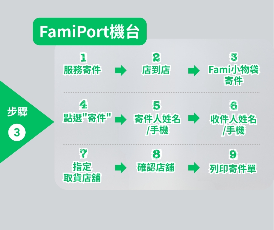 • 即日起至全家便利商店店舖使用FamiPort機台,點選[Fami小物袋]寄件服務完成寄件(不包含訂單刪除、未成功交寄),即符合折扣碼領取資格。